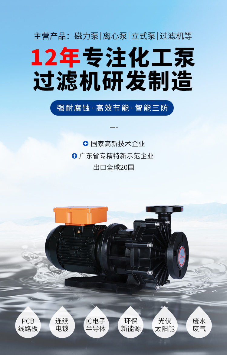 广东企华工业设备有限公司(简称企华泵业)成立于2010年,是一家以耐腐蚀化工泵和电镀过滤机研发制造为基础的国家高新技术企业。12年来专业研发生产销售磁力泵、立式泵、机械轴封离心泵和各种电镀过滤设备,产品广泛应用于PCB/FPC、半导体、新能源、太阳能、电镀、涂装、化工、环保等领域。公司创始人已有二十余年行业经验,目前企华产品被众多上市公司选用,业务范围已扩展至全国并出口30多个国家和地区,全球客户数量突破10000家。企华泵业致力于为客户提供高性价比的产品和优质的服务,并且在高效节能、泵浦寿命等方面处于行业领先地位。